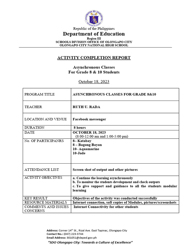 Asynchronous Classes Report for Grades 8 & 10 | PDF | Cyberspace ...