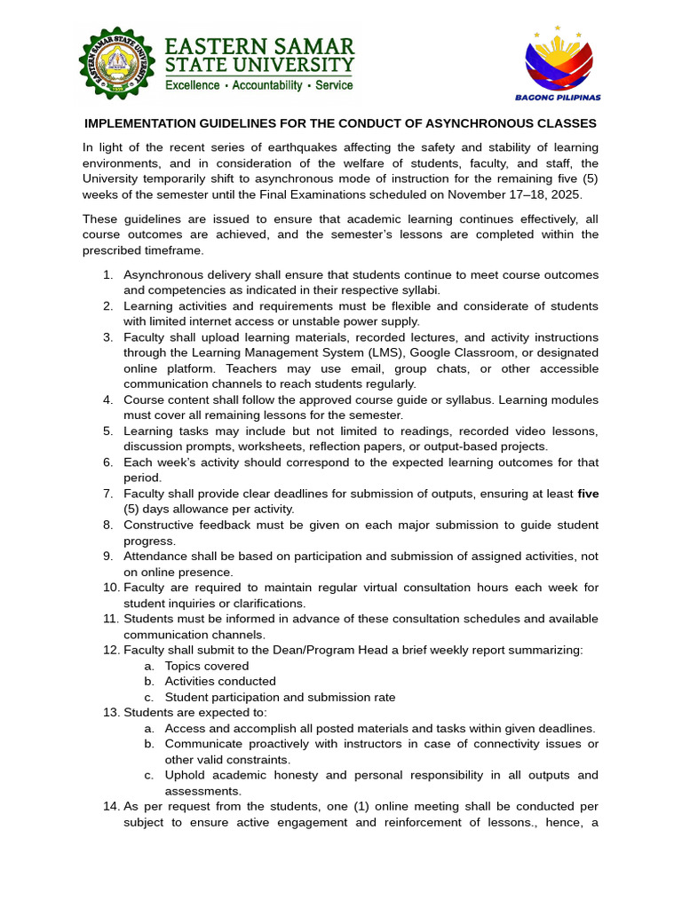 Implementation Guidelines For The Conduct of Asynchronous Classes | PDF ...