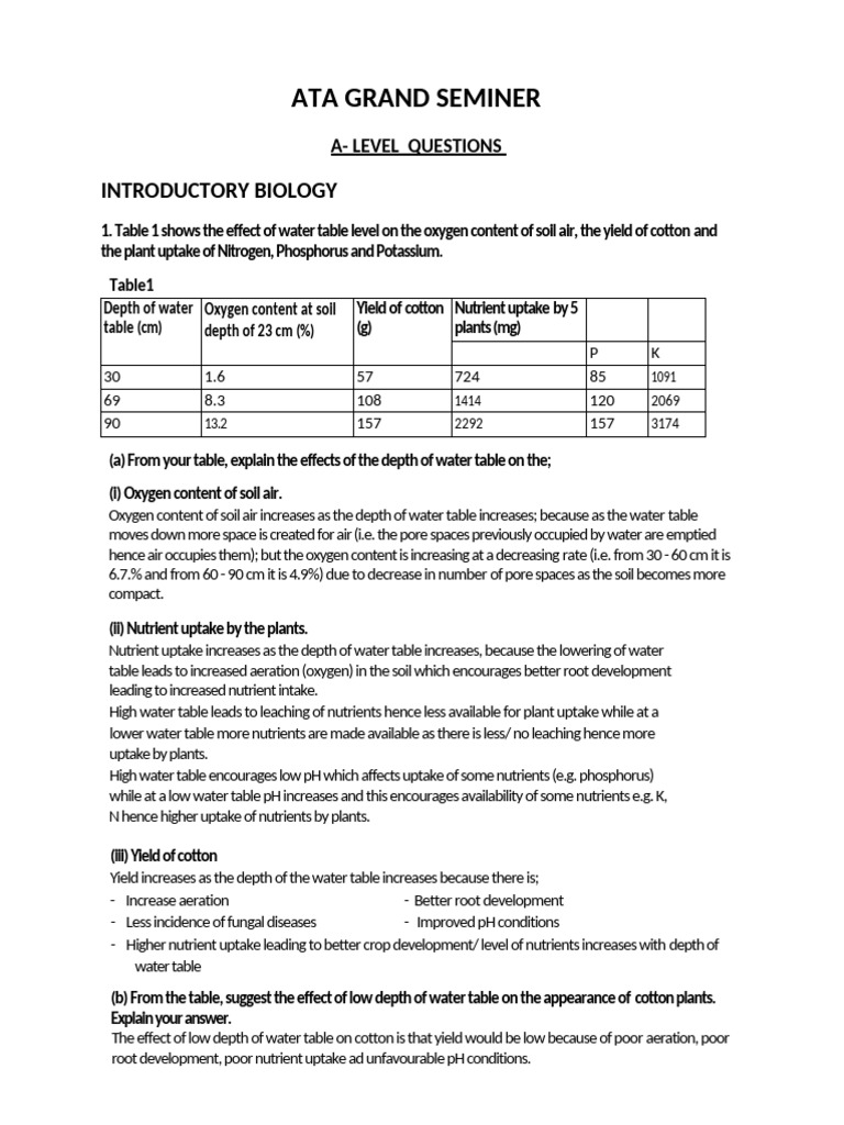 Ata Seminar Questions For A - Level - 102809 | PDF | Soil | Herbicide
