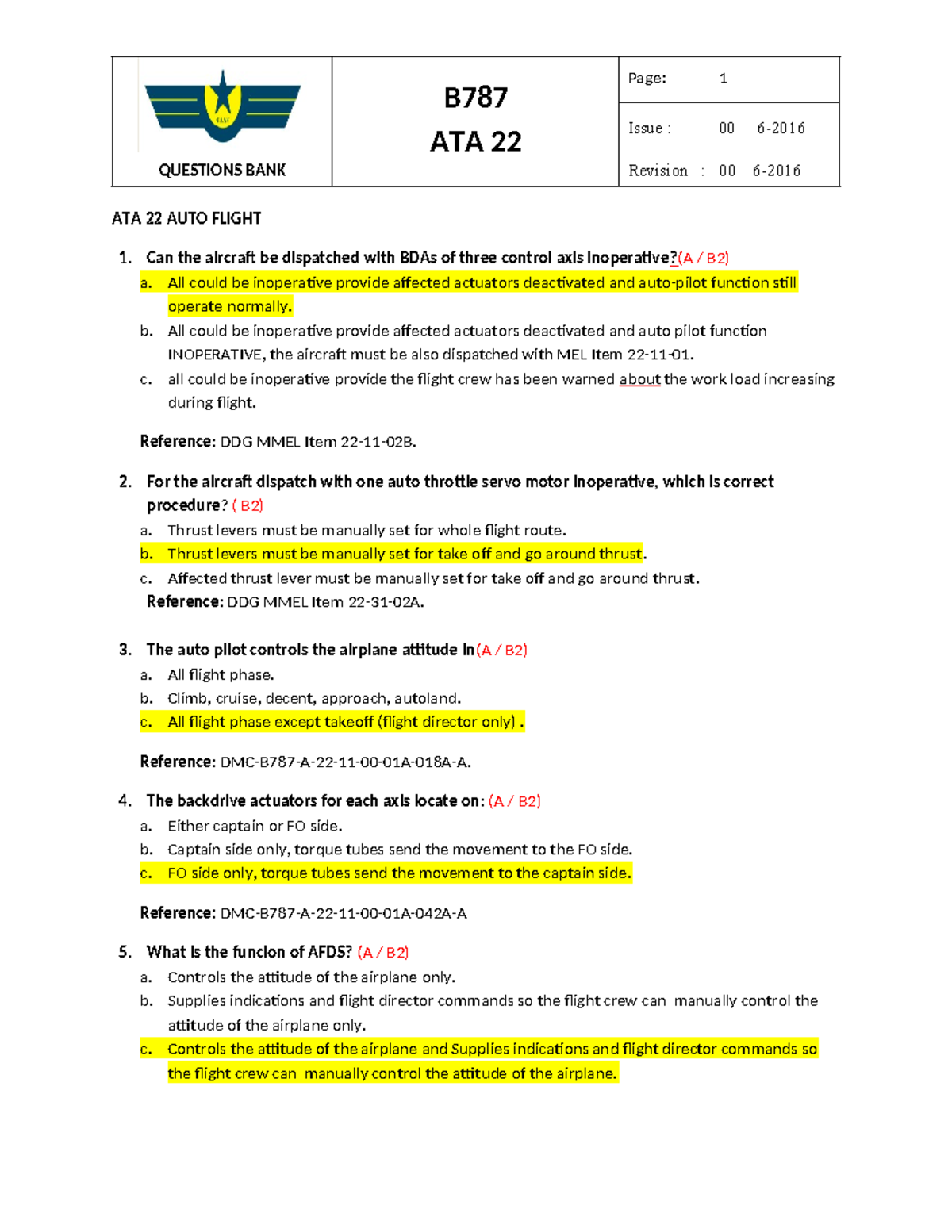 B787 ATA 22 Auto Flight Questions Bank (Issue 00, Rev 00) - Studocu