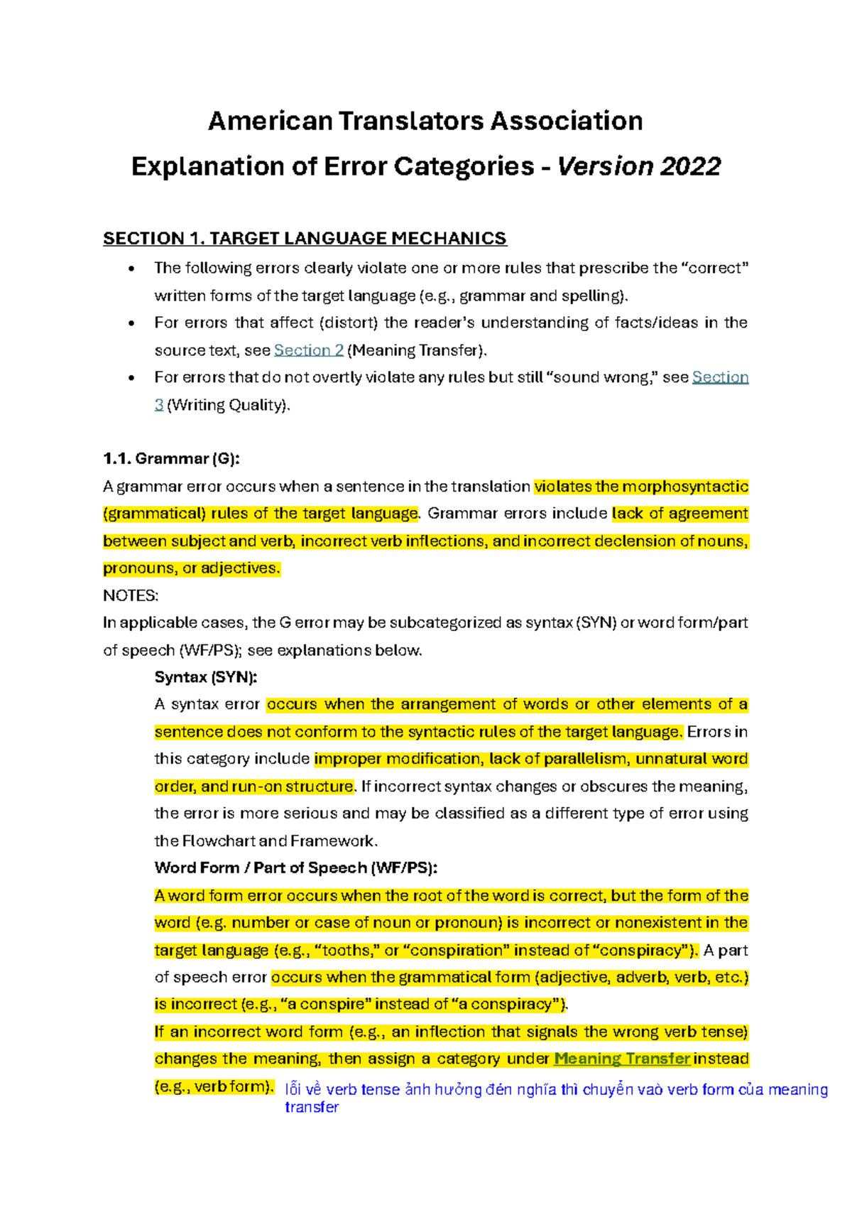 ATA Error Categories Explained: Target Language Mechanics 2022 - Studocu