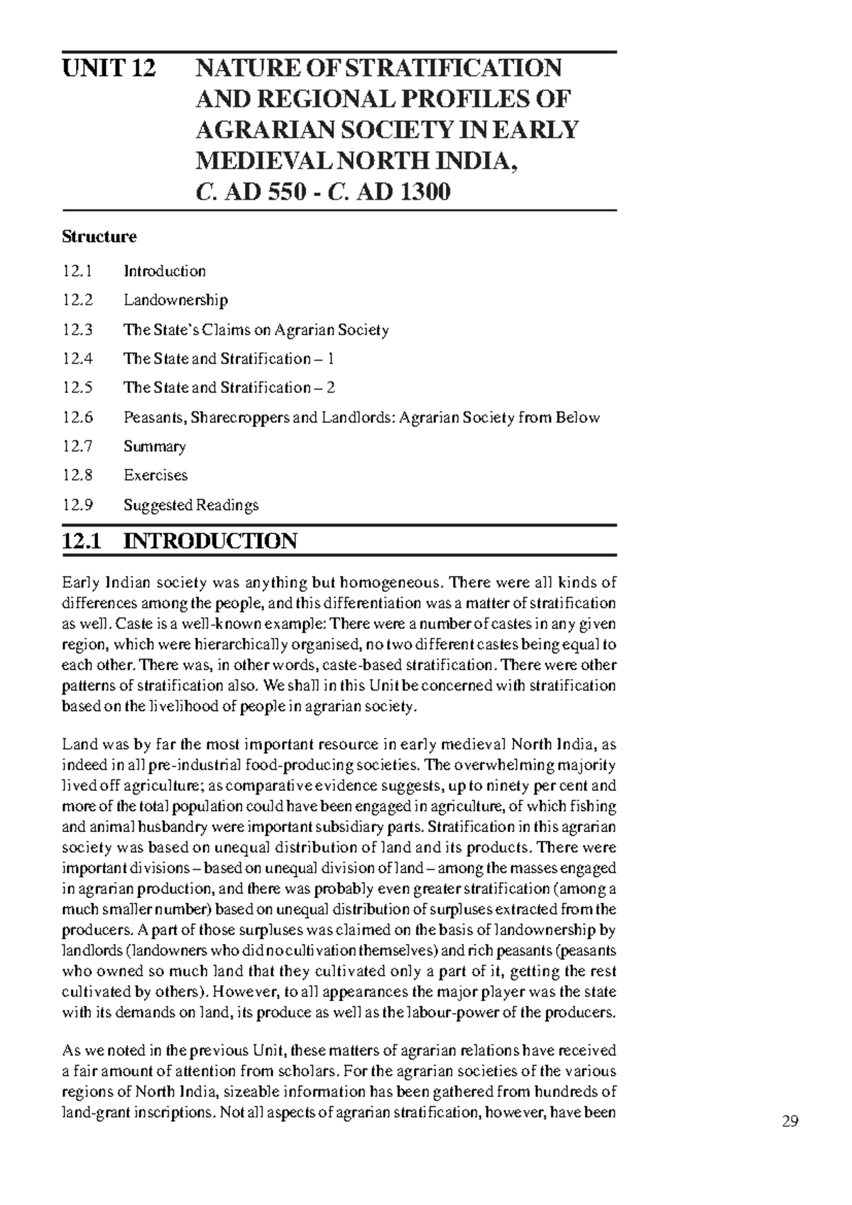 Unit 12: Nature of Stratification & Agrarian Society in Early Medieval ...