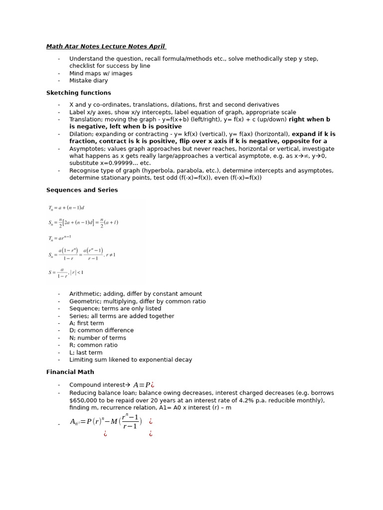 Advanced Math Atar Notes April Lecture Summary | PDF