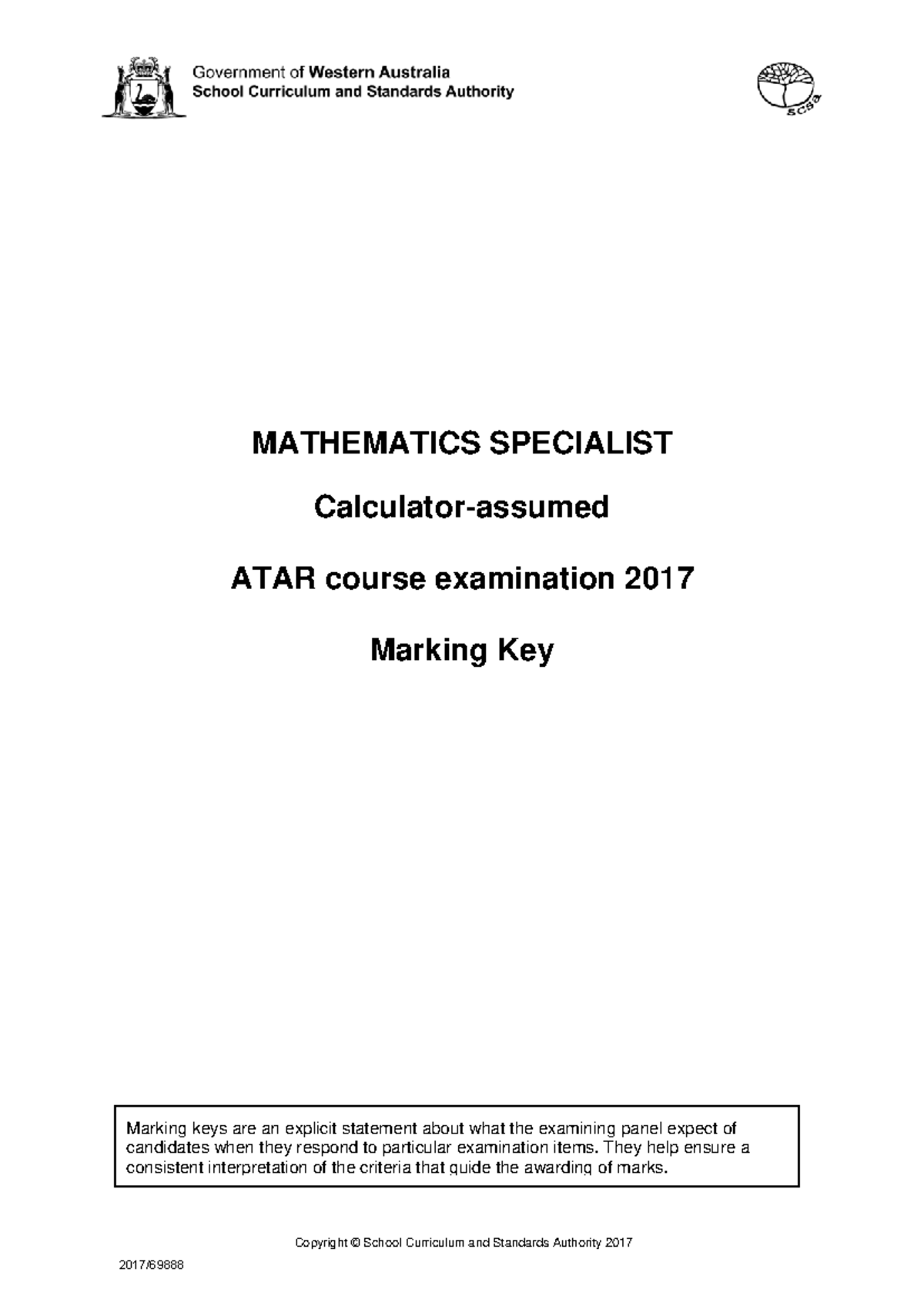 Exam 8 2017, questions - MATHEMATICS SPECIALIST ATAR course examination ...