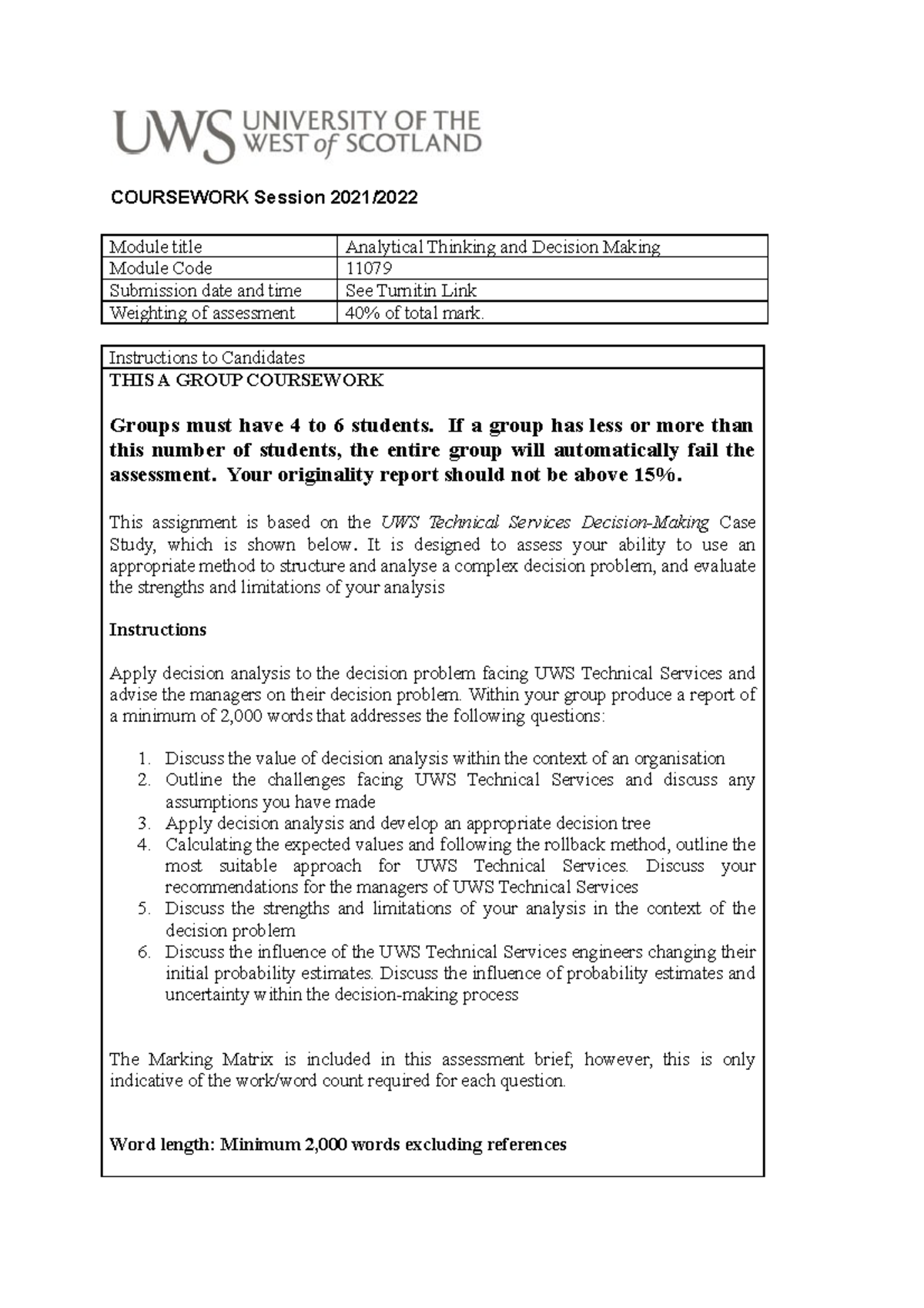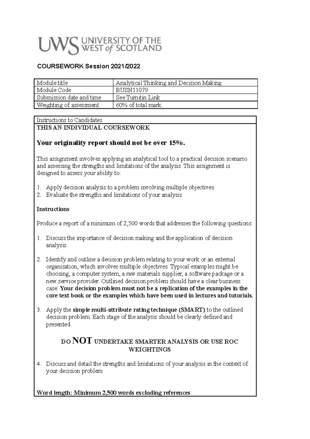 ATDM Individual Assessment 2021 - 2022 | PDF | Decision Making | Turnitin