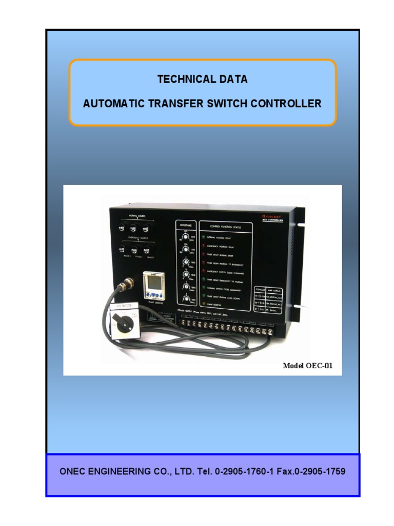 Technical Data Automatic Transfer Switch Controller: ONEC ENGINEERING ...