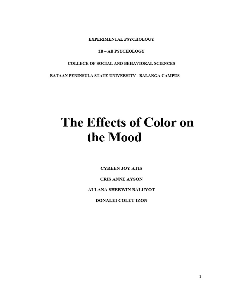 Atis Ayson Baluyot Izon - The Effect of Color On The Mood | PDF | Color ...