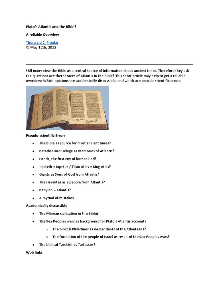 Plato's Atlantis and The Bible PDF | PDF | Flood Myth | Atlantis