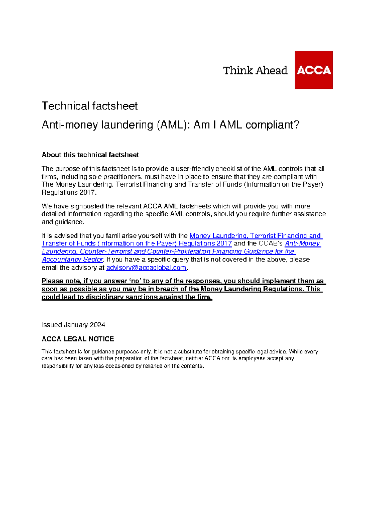 ACCA AML Compliance Checklist: Are You Compliant? (Jan 2024) - Studocu