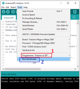 ATmega328P microcontroller - How to burn bootloader using Arduino Uno ...