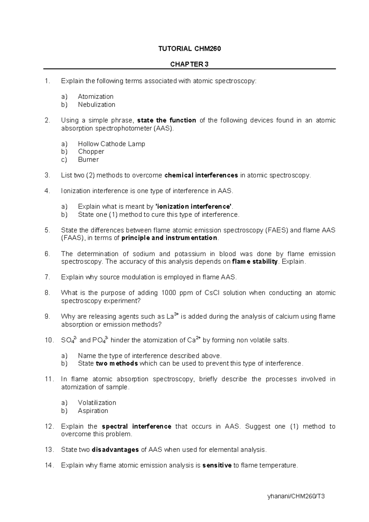 Tutorial 3 - CHM260: Atomic Spectroscopy Concepts and Methods - Studocu