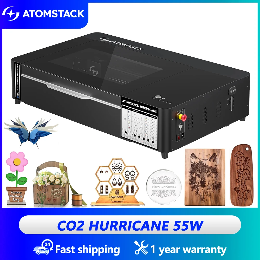 Amazon.com: ATOMSTACK Hurricane 55W CO2 Laser Cutter, Smart Desktop CO2 ...