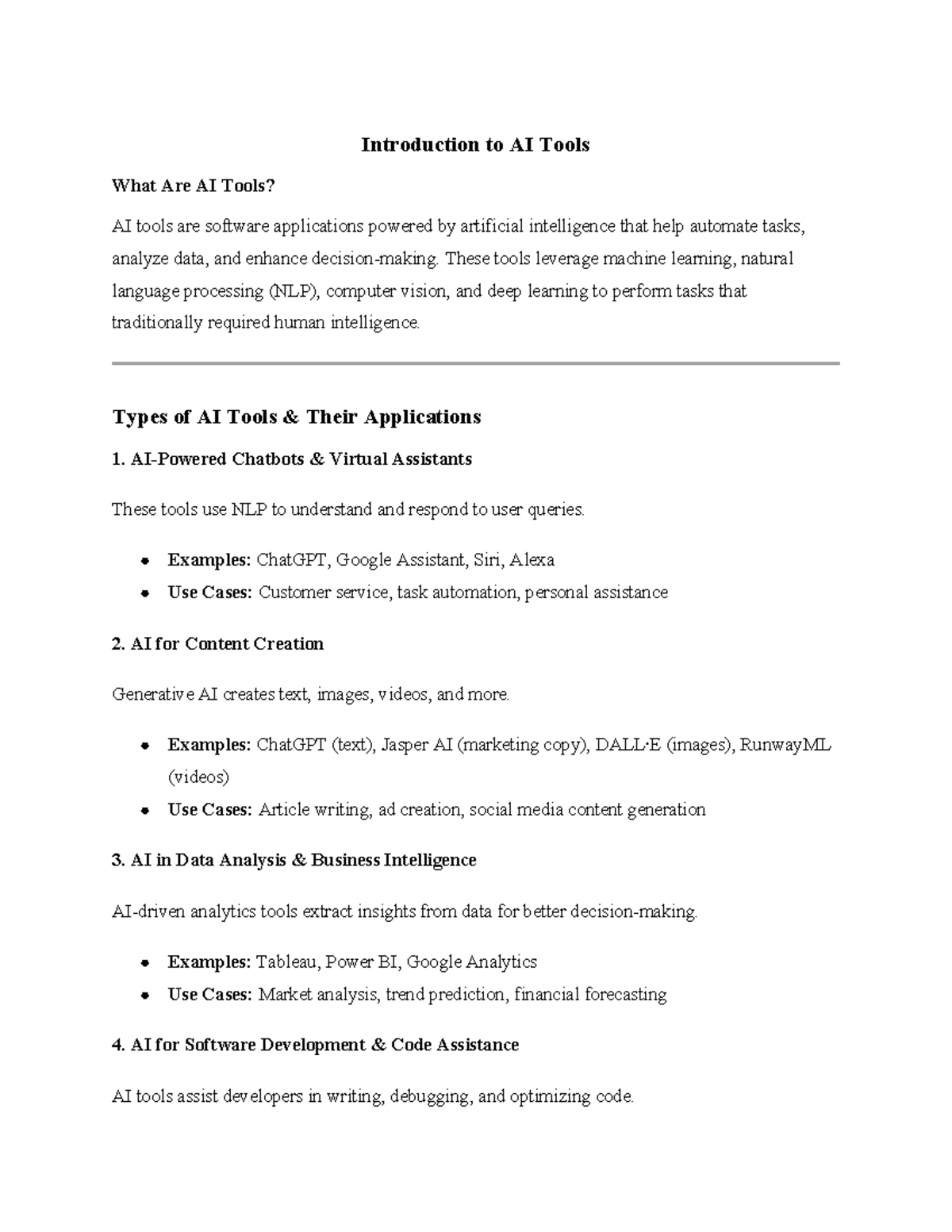 AI Tools Overview: Types, Applications, and Benefits for Users - Studocu
