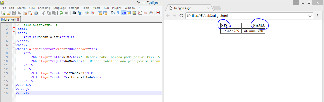 Menggunakan Fungsi Attribut Align untuk Table HTML (Di Baris dan Kolom ...