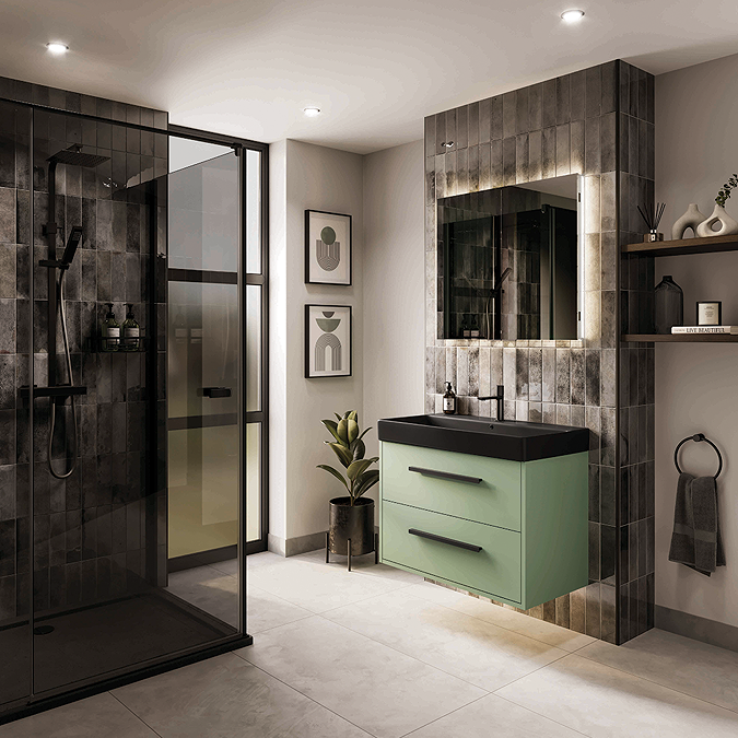 hib. Atrium 80 Semi-Recessed LED Aluminium Mirror Cabinet - Fizzy Bath