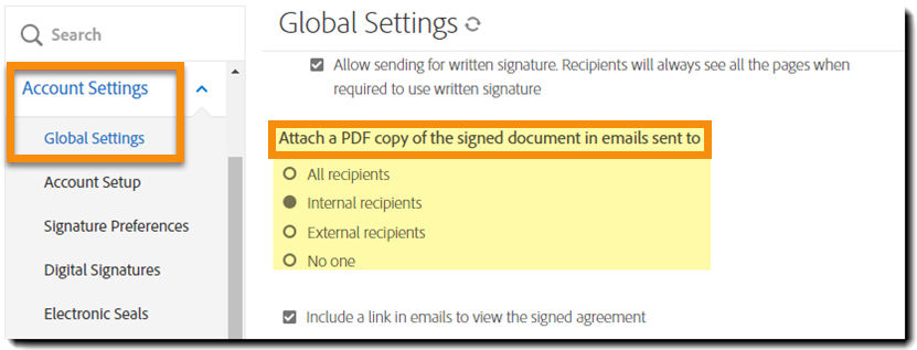 Attach a PDF copy of the signed document in emails sent to