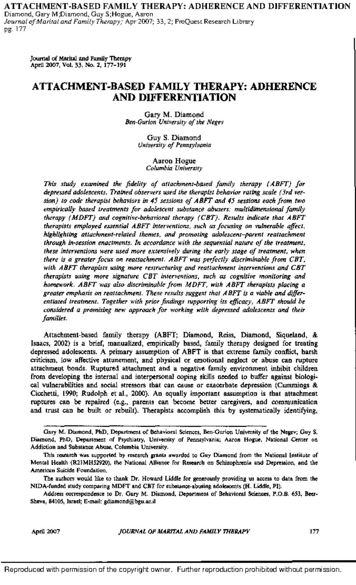 Attachment- Based Family Therapyadherence AND Differentiation - Health ...