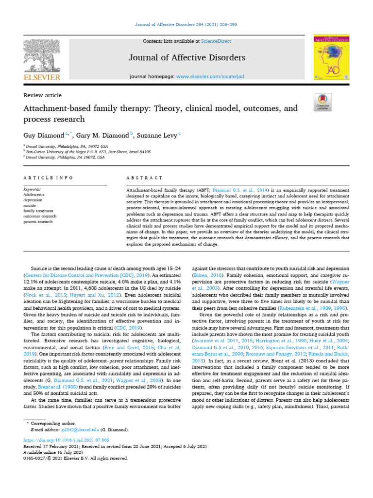 Attachment-Based Family Therapy Theory, Clinical Model, Outcomes, and ...