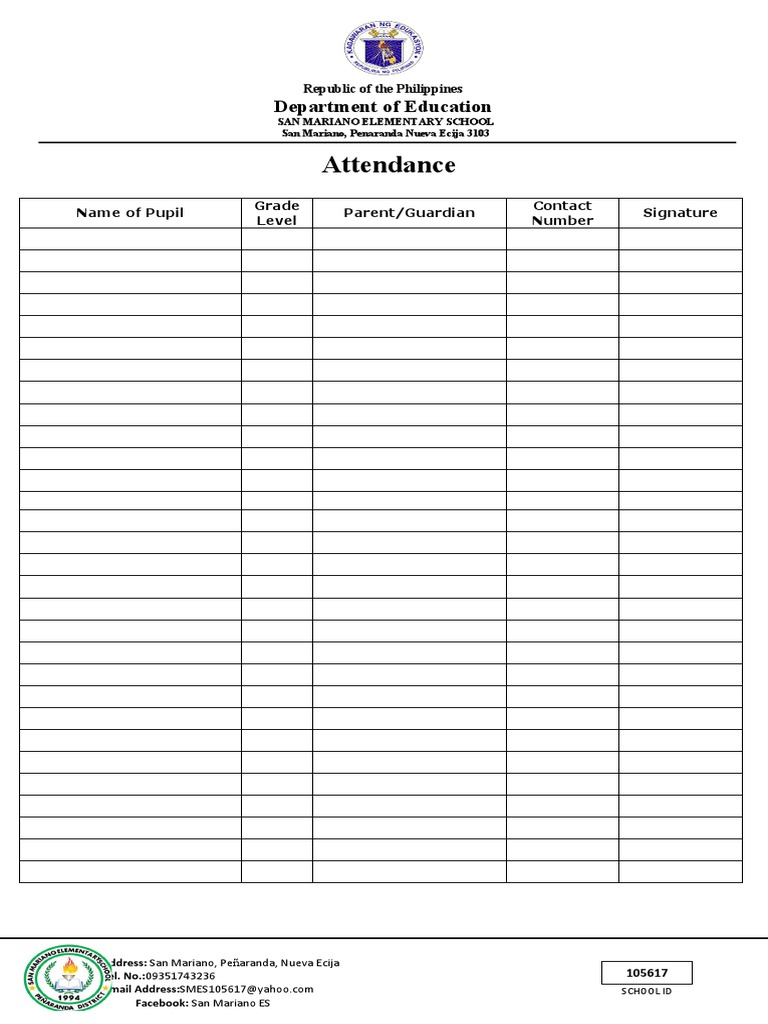 Attendance - sample format - Republic of the Philippines Biliran ...