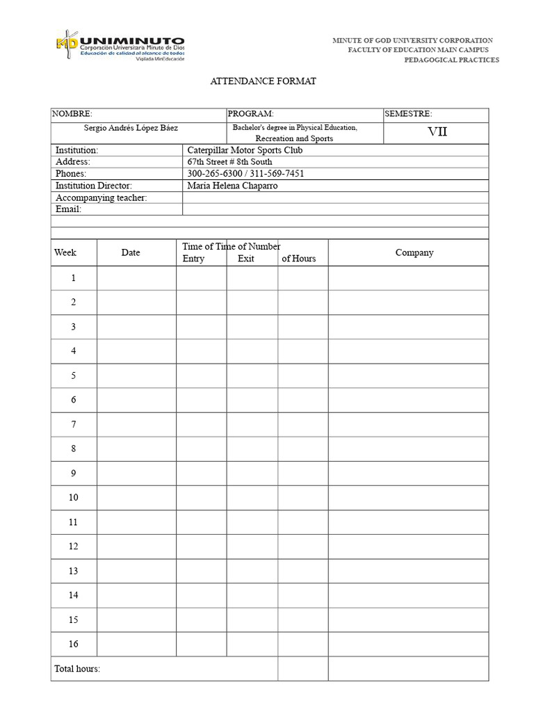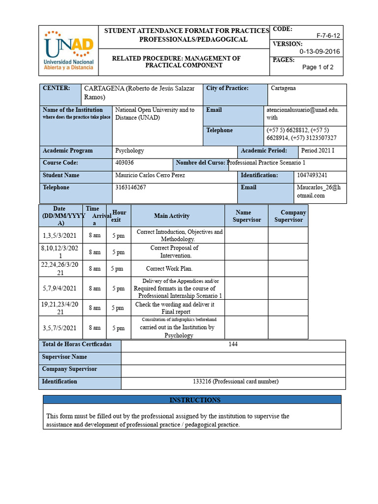 F-7-6-12 STUDENT ATTENDANCE FORMAT FOR PROFESSIONAL PRACTICES | PDF