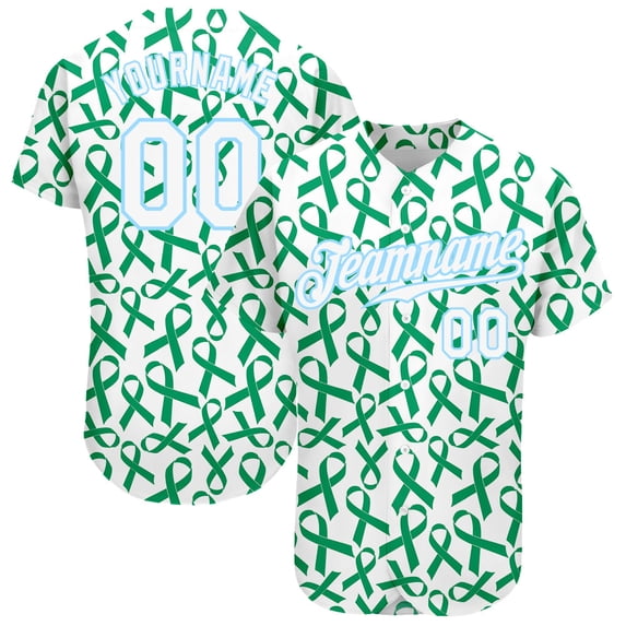 Custom Kelly Green White-Light Blue 3D Pattern Design Breast Cancer ...
