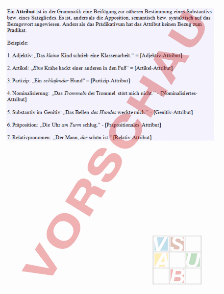 Deutsch: Arbeitsmaterialien Attribut - 4teachers.de