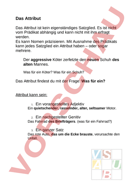 Arbeitsblatt: Das Attribut - Deutsch - Grammatik