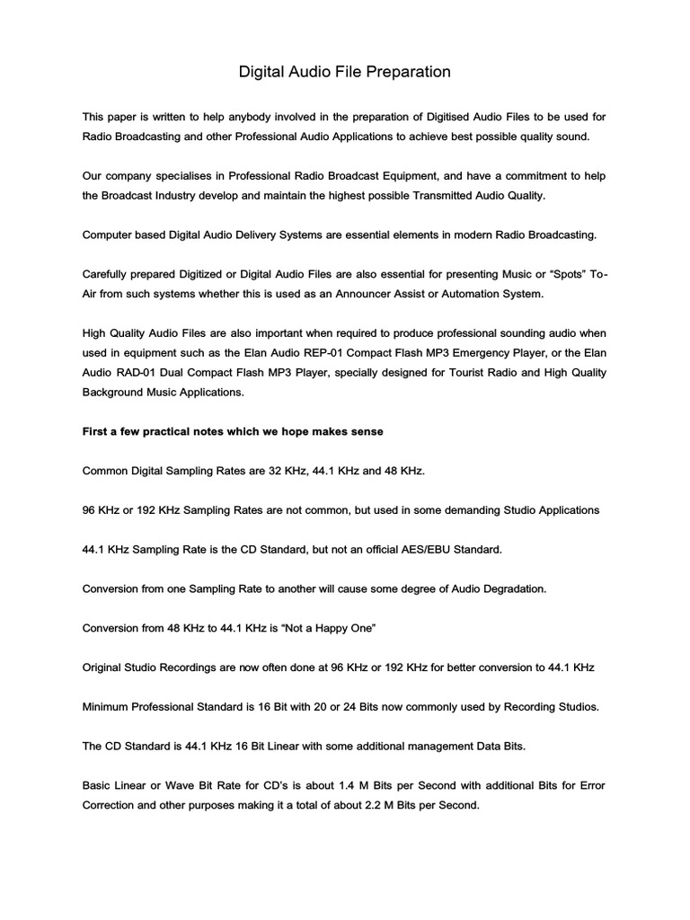 Elan Audio: Digital File Quality Guide | PDF | Mp3 | Digital Audio