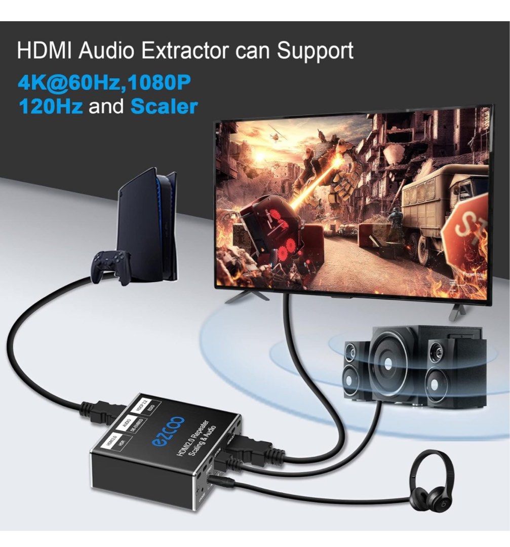 HDMI Splitter 1x1 Audio Extractor 4K 60Hz Atmos CEC EDID/Down-Scale ...
