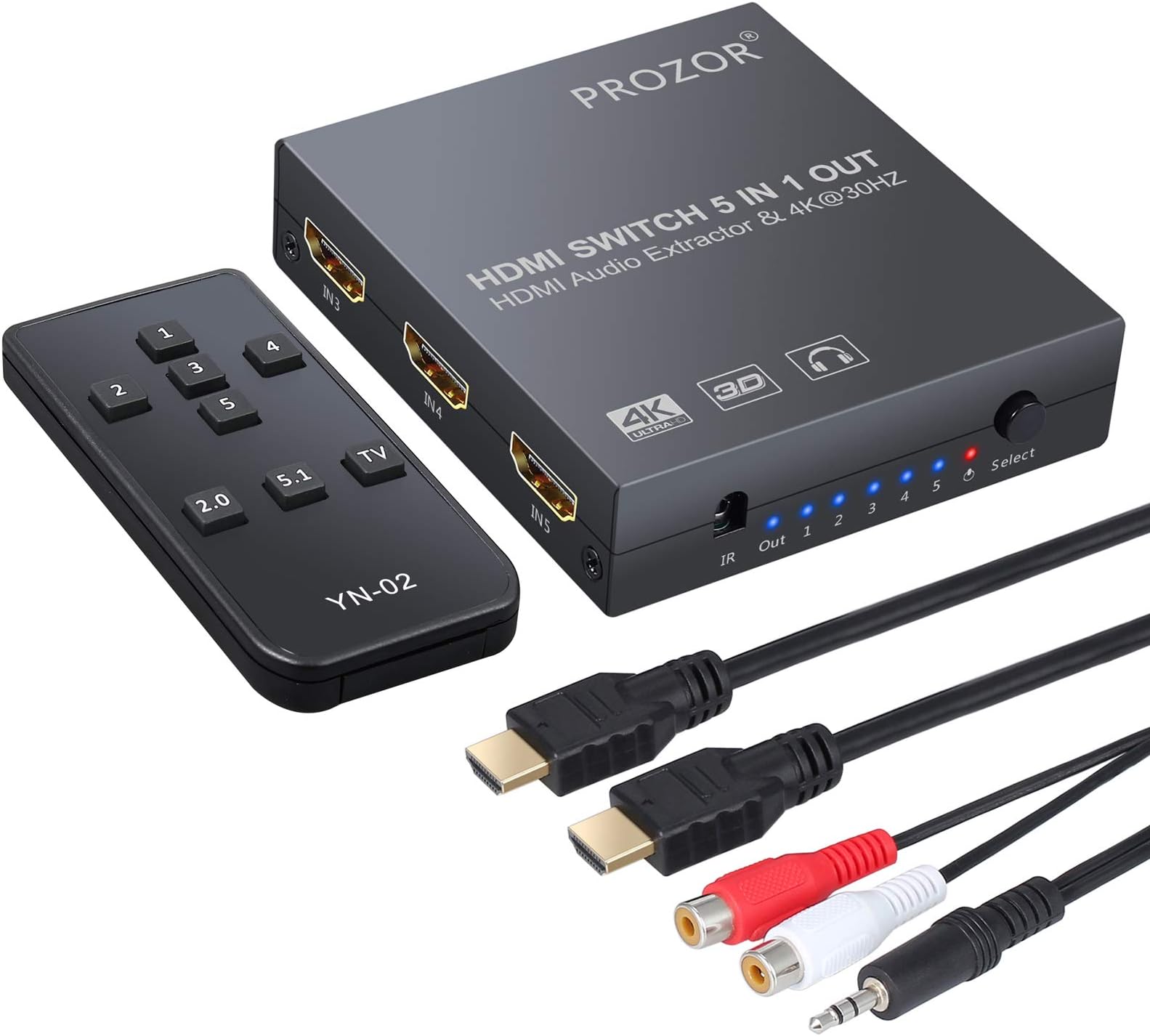 5X1 HDMI Switcher with Audio Extractor HDMI Switcher 5 in 1 out 4K with ...