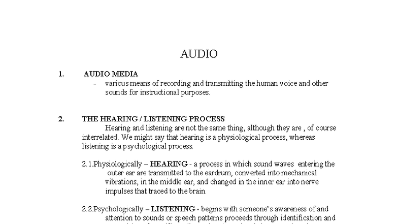 AUDIO 101: Understanding Audio Media and Listening Skills - Studocu