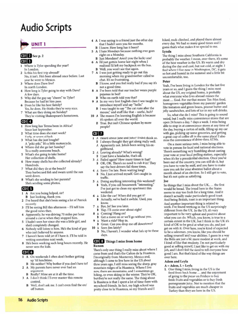 Unit Lesson Audio Scripts | PDF