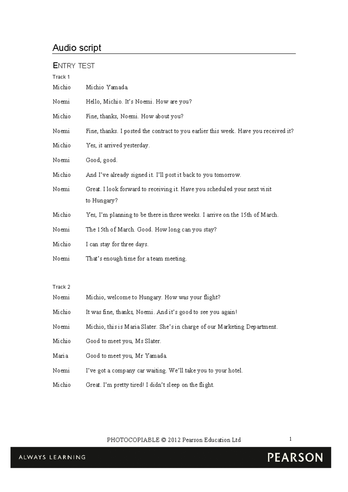 Audio scripts - abcde - Audio script ENTRY TEST Track 1 Michio Michio ...