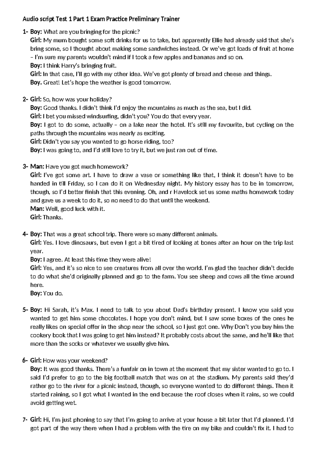 Audio script Test 1 Part 1 Exam Practice Preliminary Trainer - Audio ...