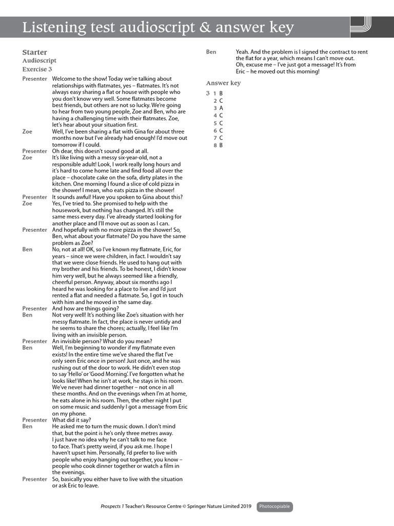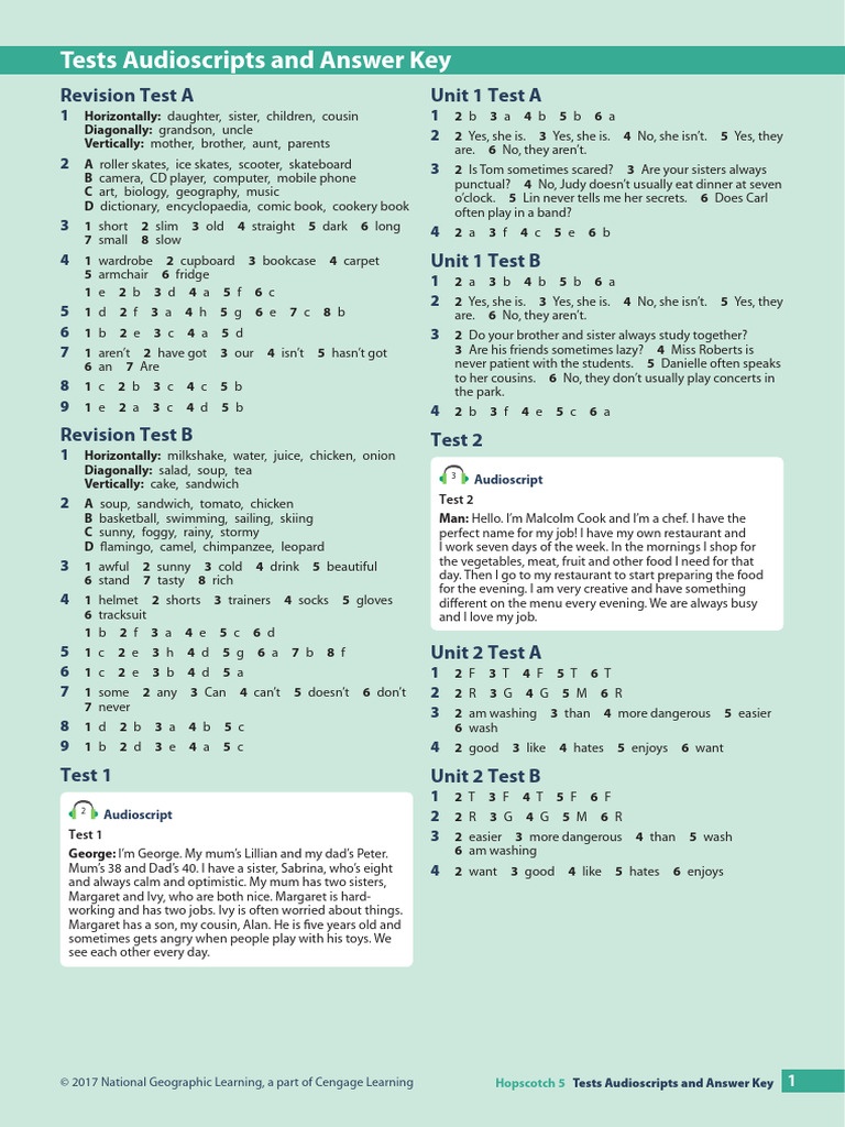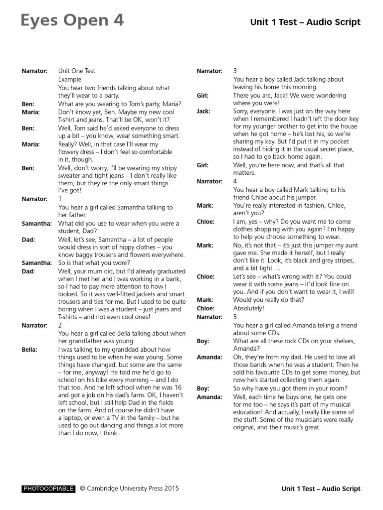 Thup12 U1!2!10 Minute Test Audio Scripts Answer Key | Download Free PDF ...