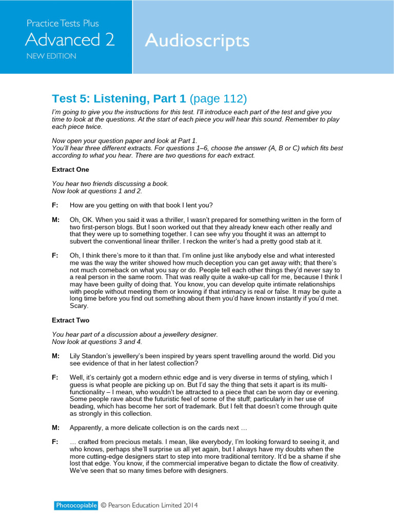 FP1 Listening Tests Audioscript AK | PDF