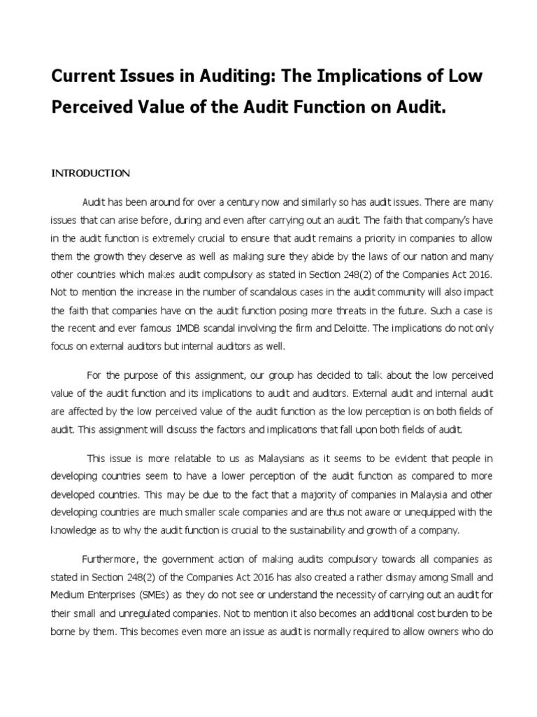 Current Issues in Auditing: The Implications of Low Perceived Value of ...