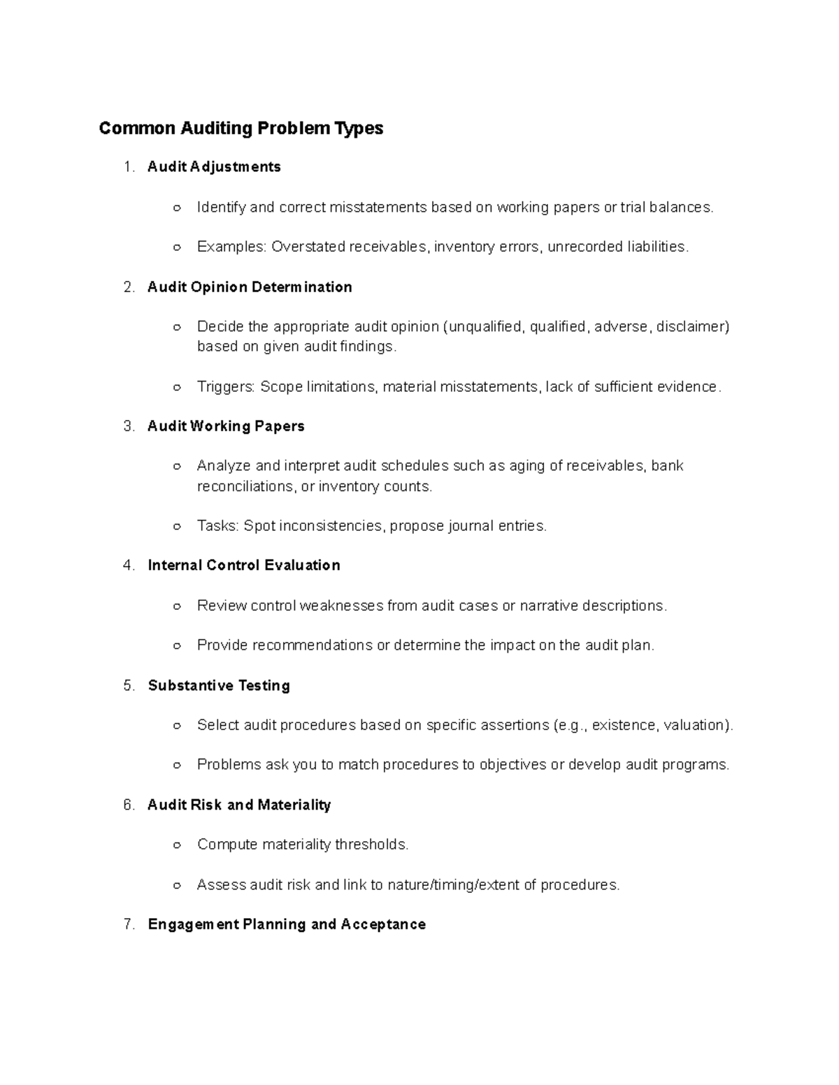 Audit - Summary of Common Problems & Procedures (ACCT 101) - Studocu