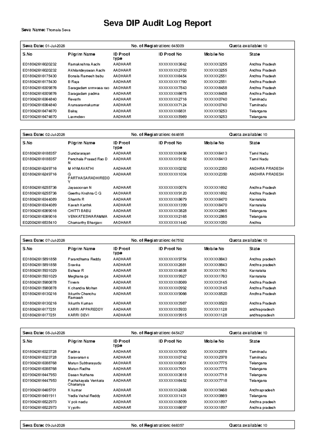 Seva DIP Audit Log Report - July 2026 Registrations - Studocu