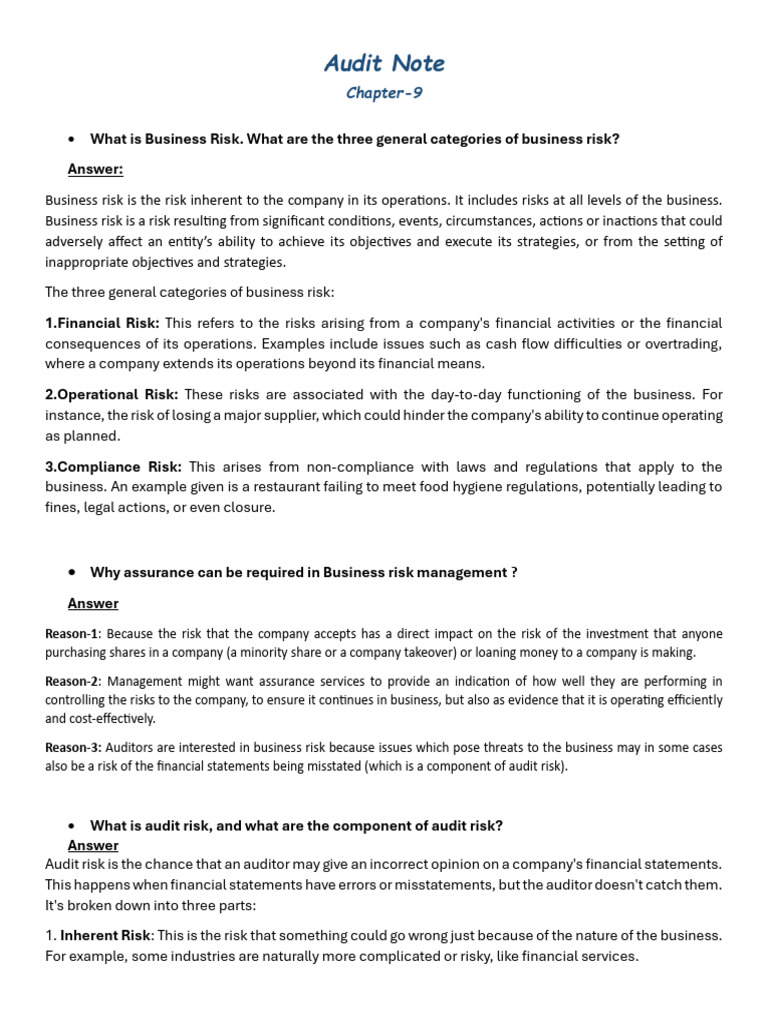 Audit Note ch-9 (Sajid) | PDF | Audit | Risk