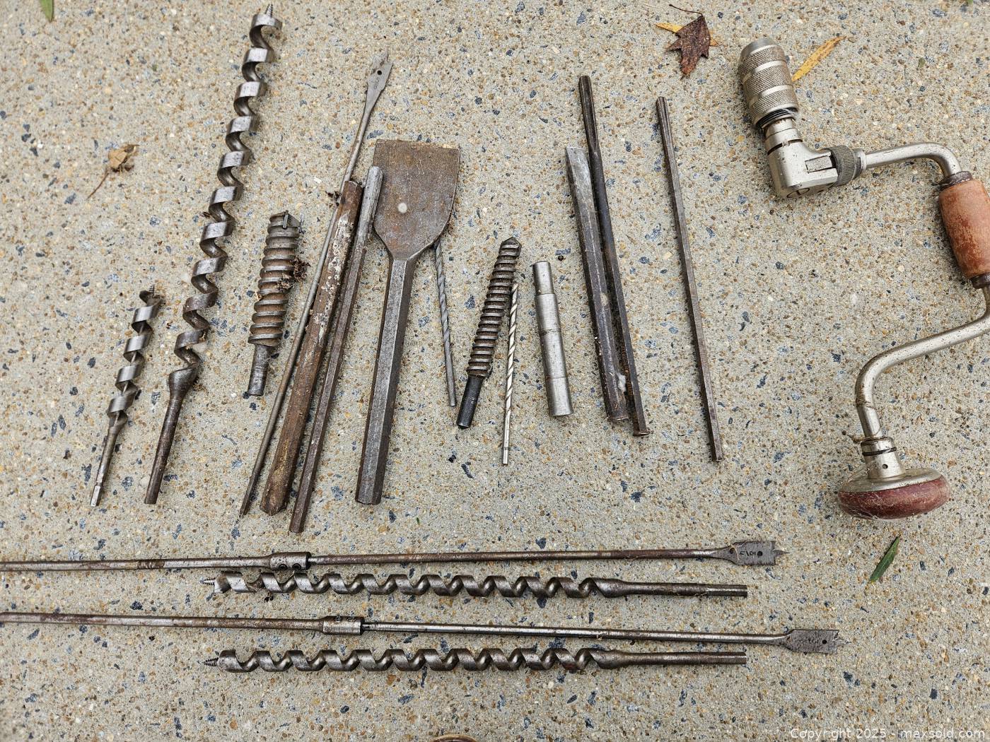 Hand brace, auger bits, extractors, chisels | Maxsold