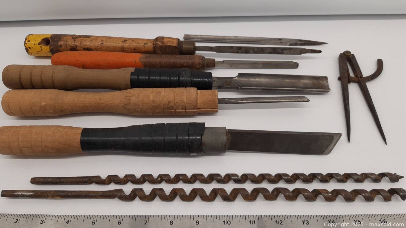 Vintage woodturning chisels, auger bits, divider | Maxsold