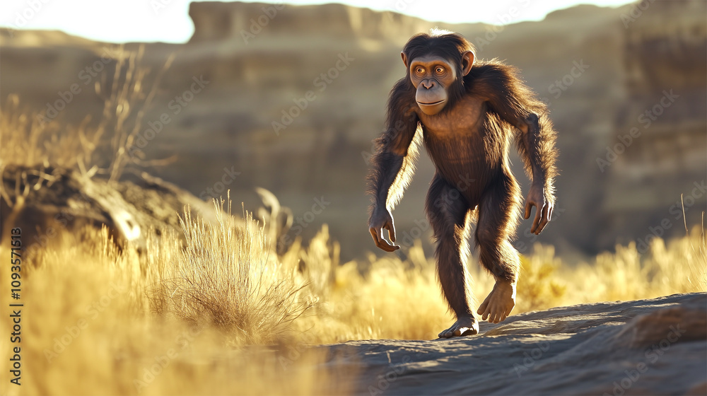 Australopithecus afarensis walking in ancient savannah, early human ...