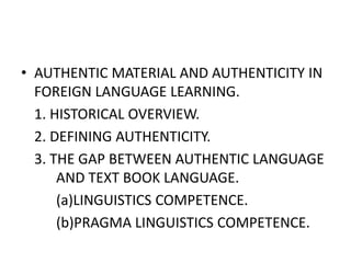 Authentic material and authenticity in foreign language learning | PPTX