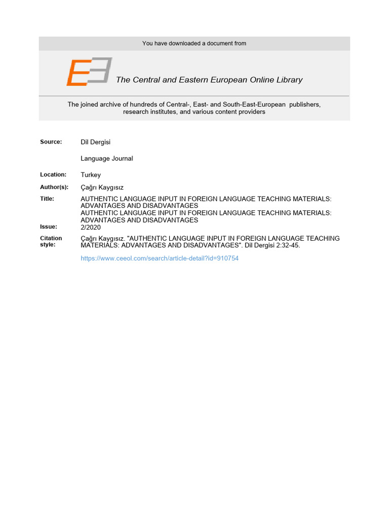 Authentic Language Input in Foreign Language Teaching Materials ...
