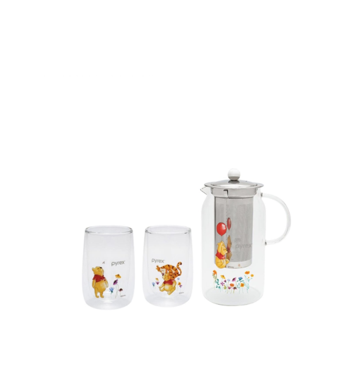 100% AUTHENTIC PYREX WINNIE THE POOH 3-PIECE DOUBLE WALL MUG AND TEAPOT ...