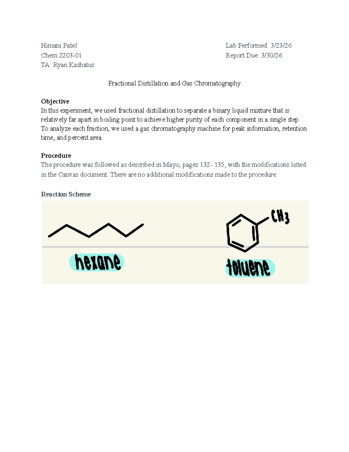 Distillation and GC Lab Report: Fractional Distillation & Analysis ...
