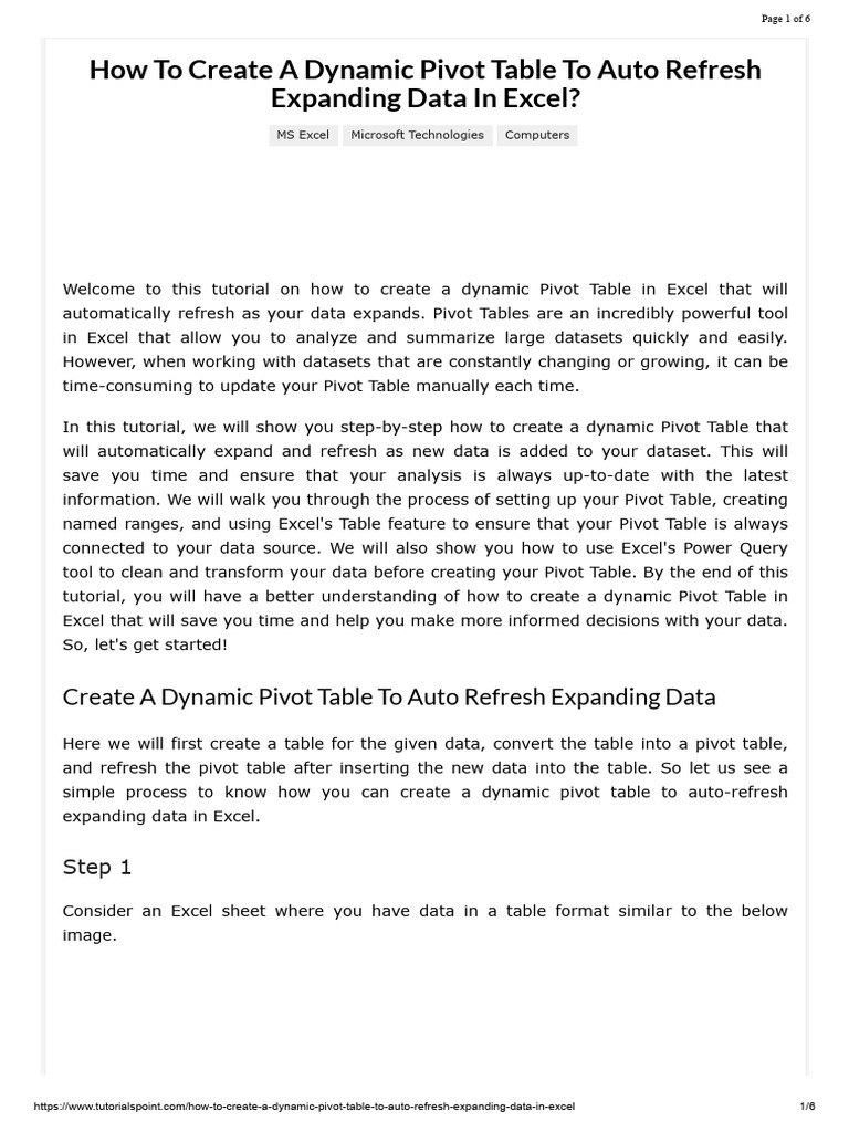 How To Create A Dynamic Pivot Table To Auto Refresh Expanding Data in ...