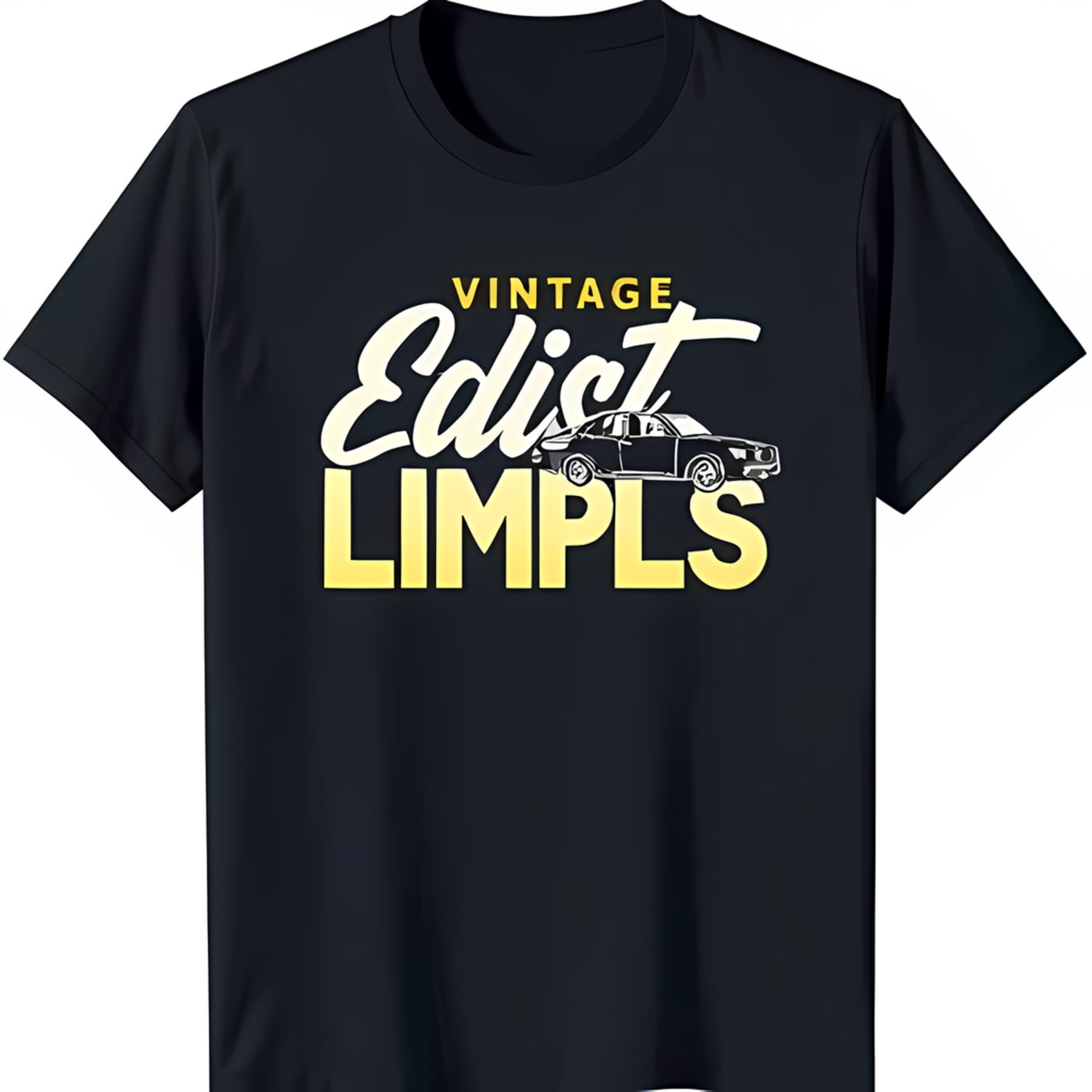 Retro Car Graphic Black T-Shirt with 'Vintage Edict Limpls' Design ...