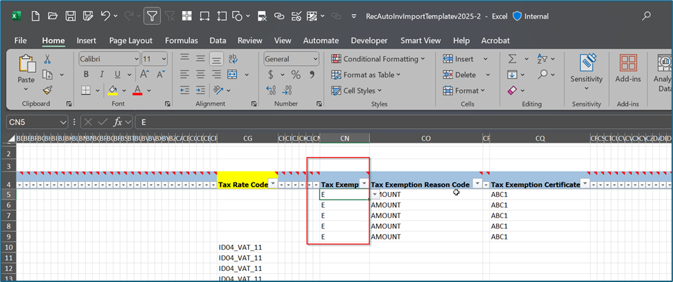 How to input the Auto invoice FBDI template to have "Exempt, Manual ...